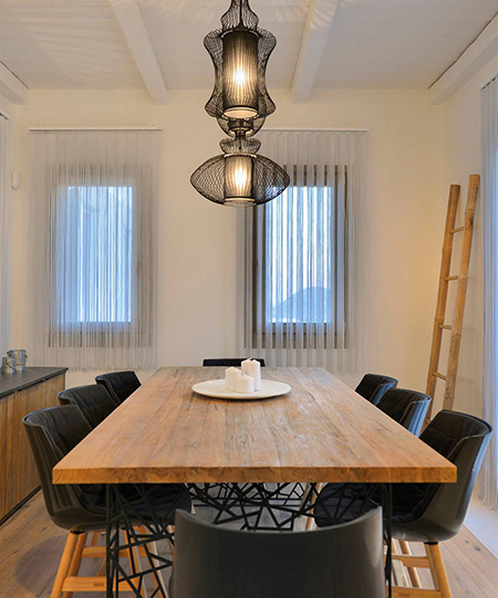 The ground floor has a large dining table for 8 people, a spacious living room with fireplace, WC and a separate kitchen, fully equipped with electrical devices SMEG and a table for 4 people.