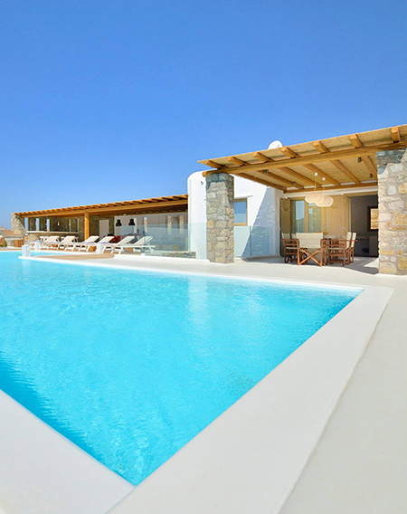 Villa Galatia is unique and perfect for families, couples or group of friends looking to have an unforgettable holiday in Mykonos island! It is a very comfortable, luxurious villa that can accommodate 8 people. It offers a lovely sea view specifically of Naxos and Paros islands, protected from the north winds.